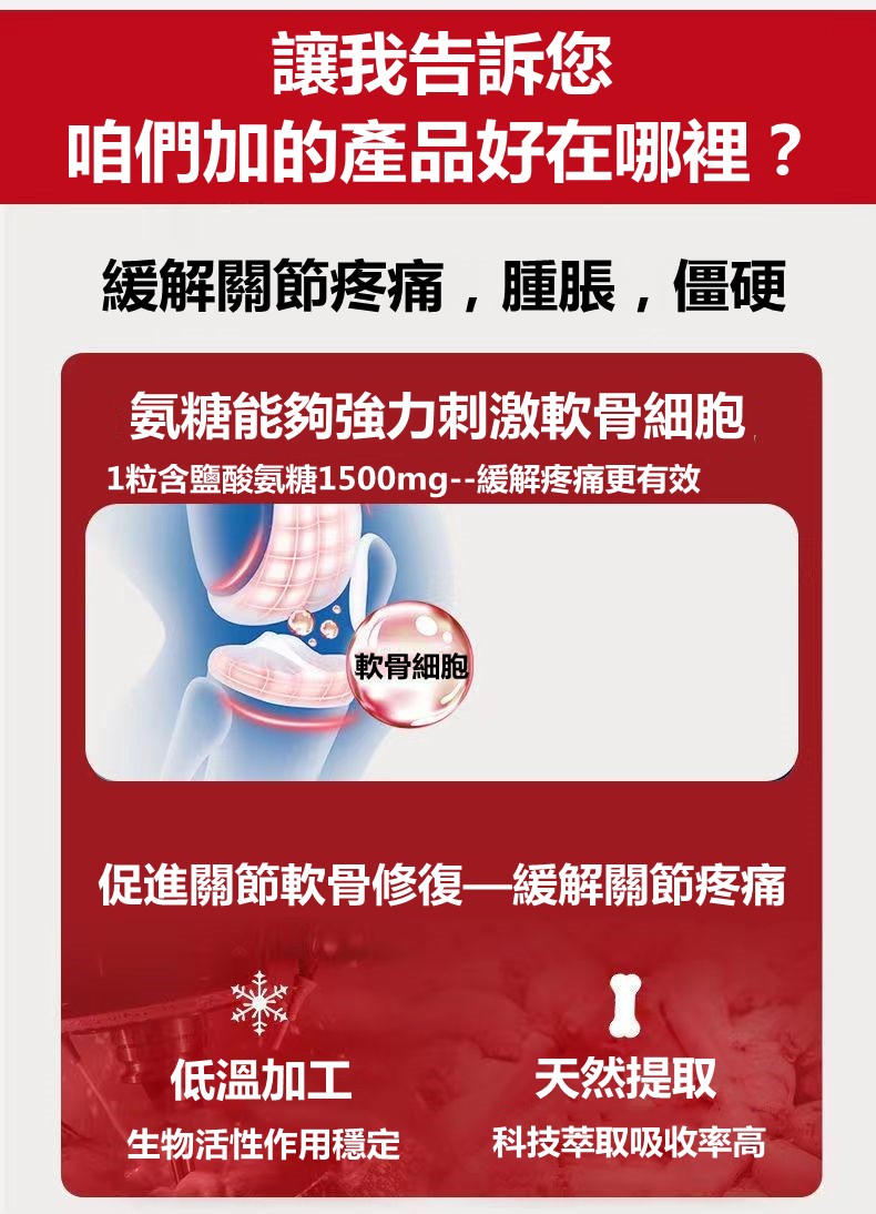 凡是使用過(美國自然之珍氨糖維D片)的患者們無不驚歎:“神奇骨痛藥,用上就見